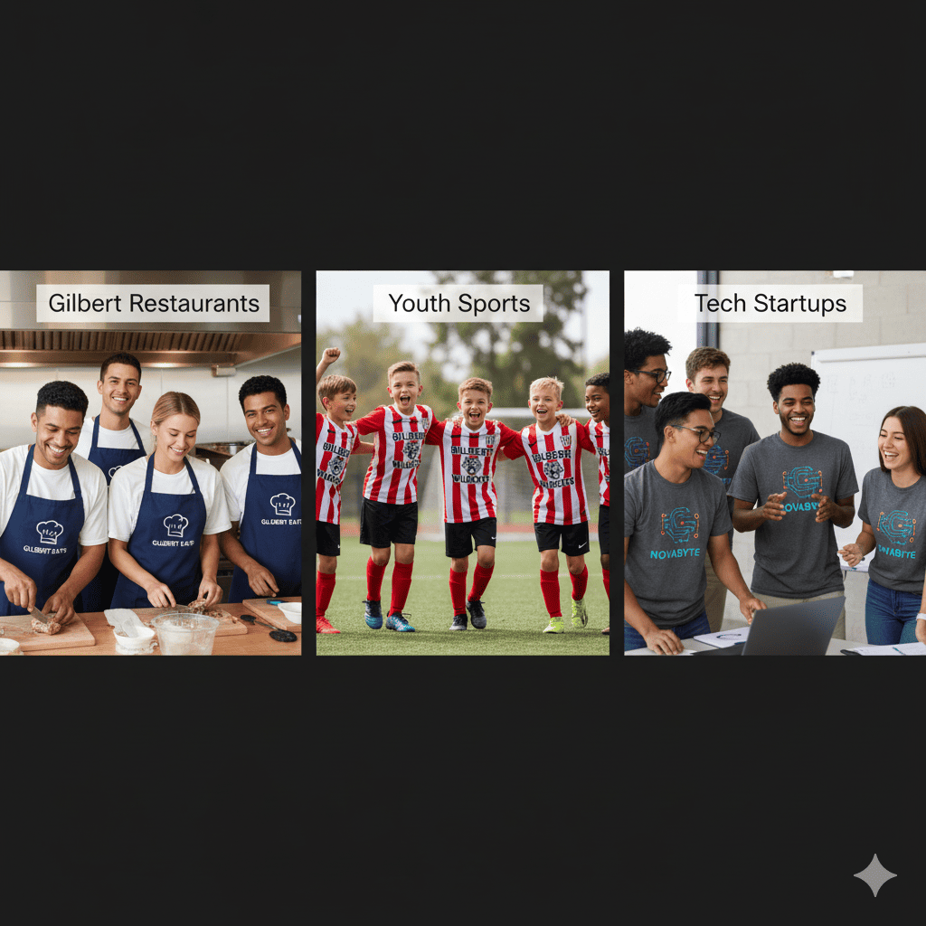 Gilbert businesses leverage screen printing to establish professional brand presence in competitive markets. Technology companies in the Heritage District outfit employees with branded polos and t-shirts that project unified corporate identity during client meetings and trade shows. Restaurants along Gilbert Road commission custom aprons and staff shirts featuring their logos, creating memorable dining experiences that extend beyond food quality.
