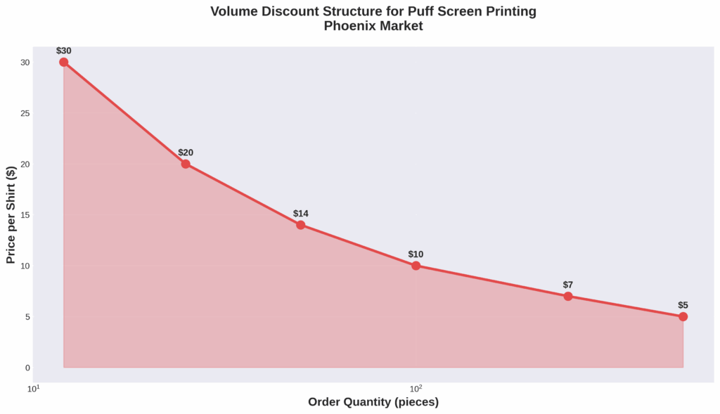 Puff screen printing with 3D effects costs significantly more than standard screen printing due to specialized materials and processes. Phoenix pricing typically ranges from $9-$35 per shirt depending on order quantity, with puff printing adding approximately $2.00 per location to base screen printing prices. The following sections detail specific pricing factors and cost-saving strategies for Phoenix businesses.